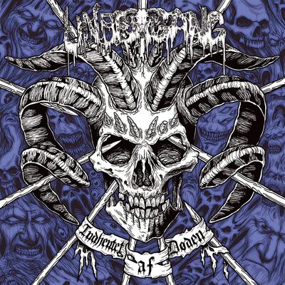 Undergang is een nog relatief jonge band uit Kopenhagen, Denemarken. Drie jonge muziekgekken besloten in 2008 de koppen bij elkaar te steken in de meest elementaire bezetting: een gitarist (tevens zanger), een bassist en een drummer. Met als resultaat een van de meest heavy death metal bands die er momenteel rondlopen. Al snel wilden zij materiaal vereeuwigd hebben, er werd een demo (op tape) opgenomen met de titel Indhentet Af Døden. Inderdaad, dezelfde titel die de kop van deze review siert. In 2009 tekende Undergang al bij Xtreem Music, vervolgens begon een lange lijdensweg met een combinatie van persoonlijke issues en het almaar uitstellen van de release. Begin 2010 werd er al een vinyl versie van het album uitgebracht op een Brits label, overigens met ander artwork. Aan het einde van dat jaar kon Undergang eindelijk zijn definitieve versie van het album aanleveren, waardoor Indhentet Af Døden nu in de juiste versie op cd kan worden uitgebracht (februari 2011). Het materiaal is dus niet meer helemaal nieuw en circuleert al langere tijd op het wereldwijde web, waardoor al een aardige hype over Denemarkens best bewaarde geheim tot dan toe ontstaan was.