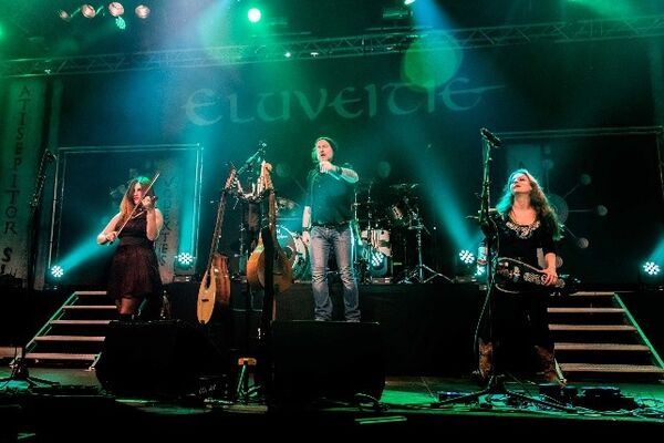 Ook voor mij wordt het tijd om de inwendige mens te verblijden met de gebruikelijke vette hap. Ondanks dat we niet de enigen waren die daar over dachten hebben we hier toch even op moeten wachten. Ach, het smaakte, het is wel ooit slechter geweest. Nog drie bands te gaan. Het Zwitserse Eluveitie (Helvetiers) een achttal man en vrouw sterk gezelschap blaast en draait er lustig op los. Hoofdrollen hebben toch wel draailier speelster Anna Murphy en zanger Chrigel Glanzmann. Maar ook fluiten, lieren, mandola, violen ontbreken niet aan dit geheel. Gelukkig doen deze instrumenten geen afbreuk aan het geluid en zanger Chrigel grunt er dan ook lustig op los.